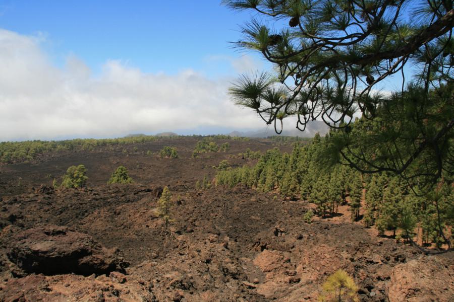 alter Lavastrom mit Kanarischen Kiefern am Rand auf Teneriffa