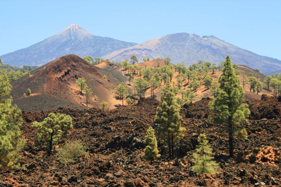 Teide mit Kanarischen Kiefern auf altem Lavastrom auf Teneriffa