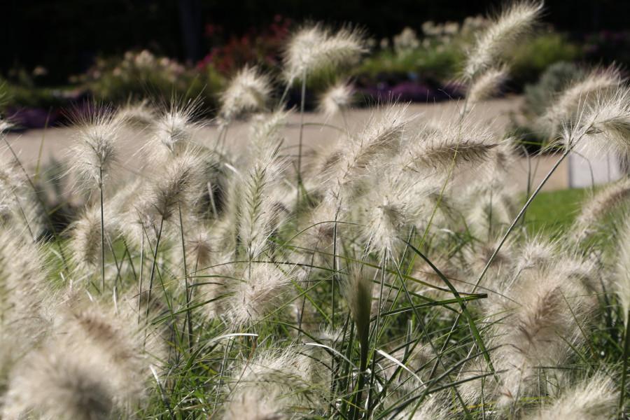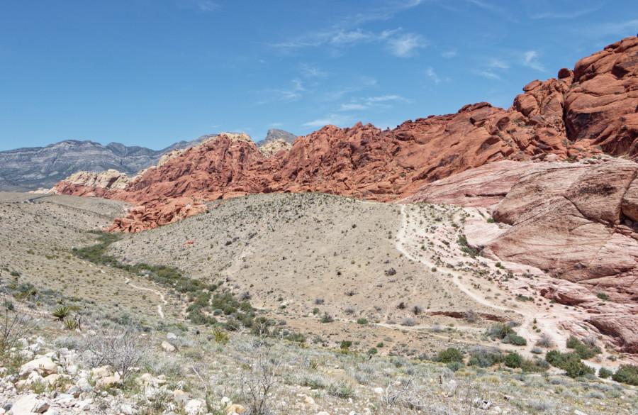 Rote Erde mit einzelnen Pflanzenbuscheln vor Wolkenmeer