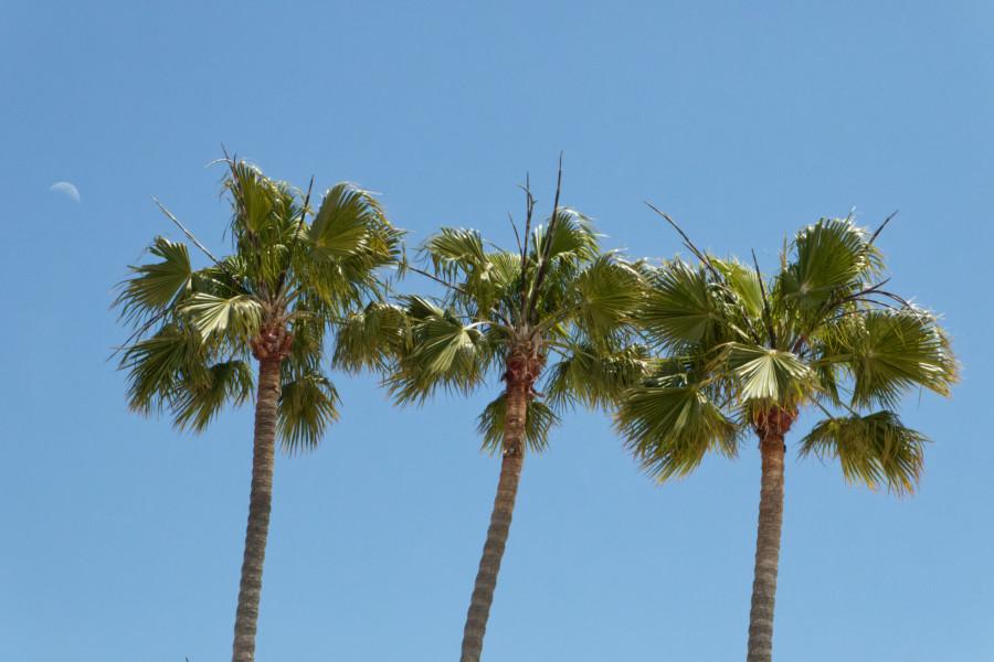 Drei Palmen mit Mond am Himmel