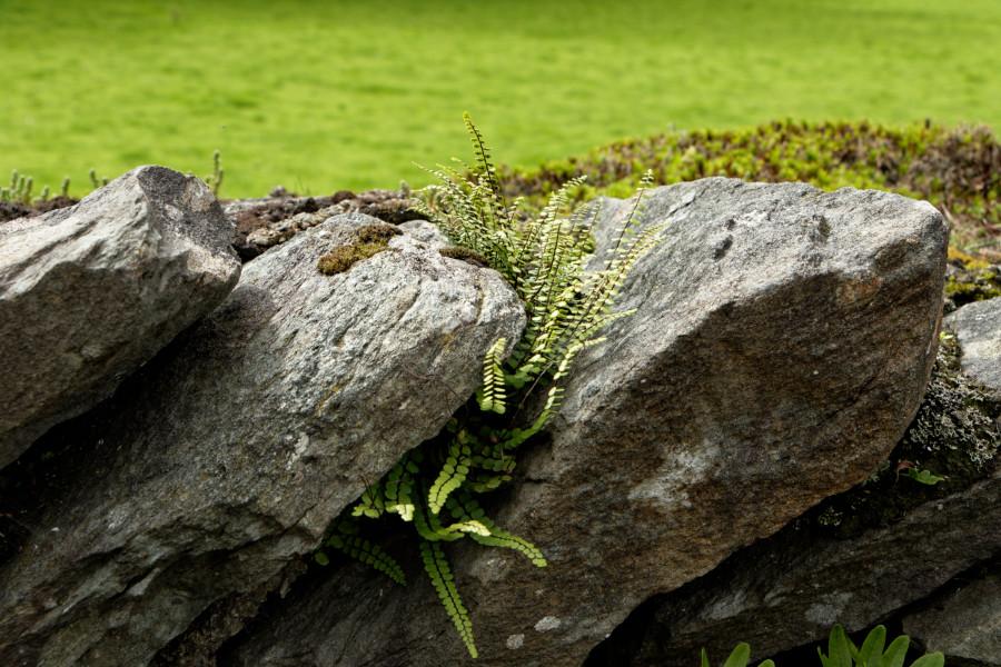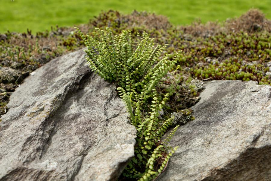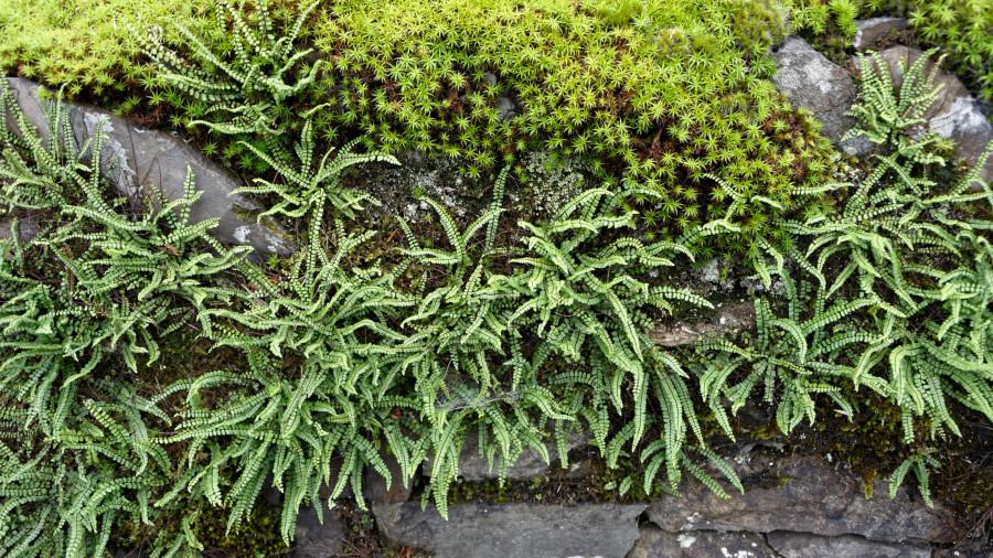 Mauer mit Sternmoos und 'Schwarzstieligen Streifenfarn'